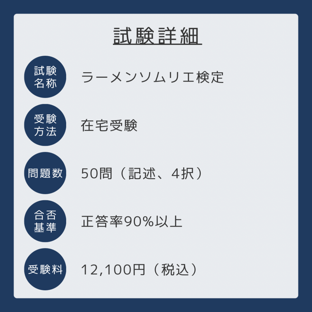 ラーメンソムリエ協会認定、ラーメンソムリエ検定を取得する資格試験です。